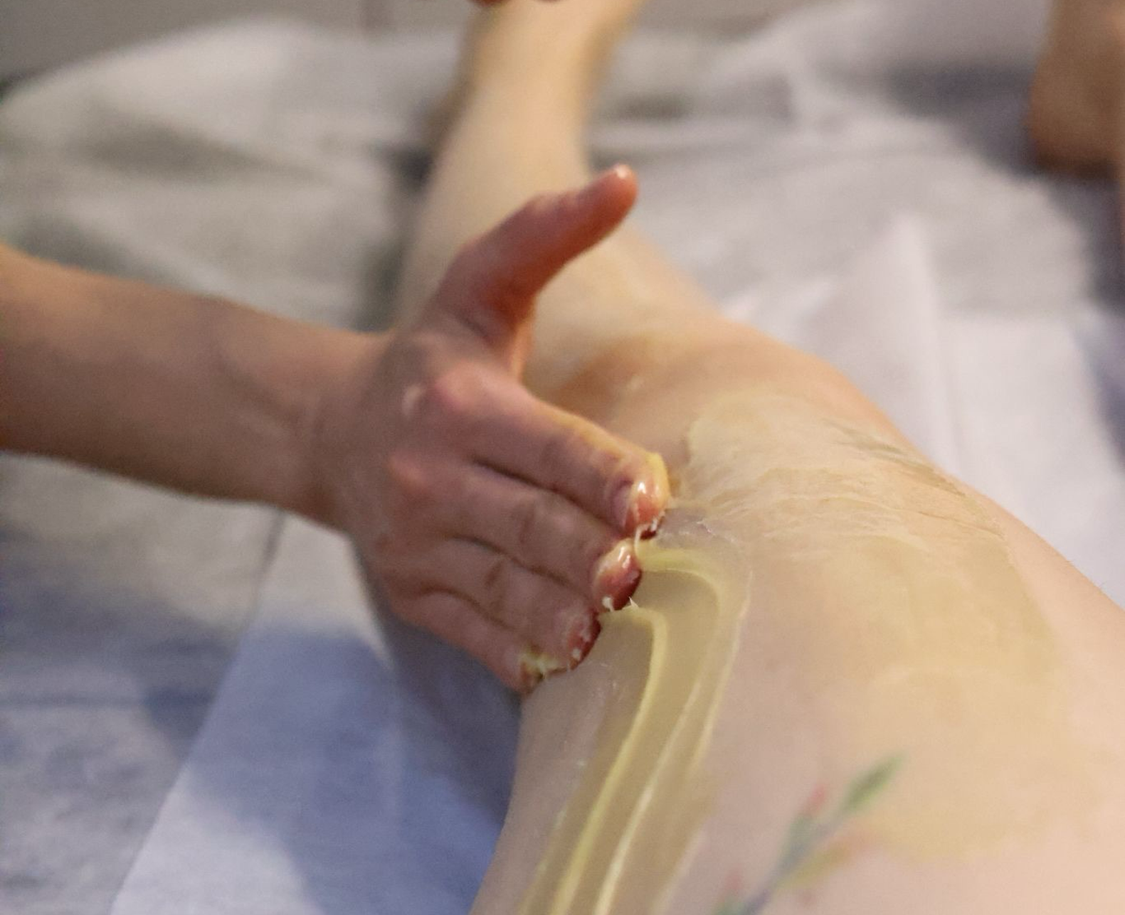 Die Anti-Cellulite-Massage ist eine bewährte Methode, um das Erscheinungsbild von Cellulite nachhaltig zu verbessern. Bei dieser Behandlung setze ich auf die Kombination aus traditionellen Schröpfgläsern und wohltuender Honigmassage (nur bei fehlender Honigallergie). Die Schröpfgläser erzeugen einen Unterdruck auf der Haut, der die Durchblutung intensiv anregt und das Bindegewebe stimuliert. Die Honigmassage ergänzt diese Wirkung perfekt: Der Honig haftet an der Haut und löst durch spezielle Klopftechniken Schlacken und Ablagerungen im Gewebe. Diese Kombination fördert nicht nur die Durchblutung, sondern unterstützt auch den Lymphfluss und verbessert sichtbar das Hautbild. Das Ergebnis: Eine glattere, straffere und vitalere Haut, die sich wunderbar gepflegt anfühlt. Die Behandlung dauert entspannende 1,5 Stunden und wird mit einem pflegenden Wickel abgeschlossen, der die Wirkstoffe tief in die Haut einschleusen und die Ergebnisse intensivieren soll.
